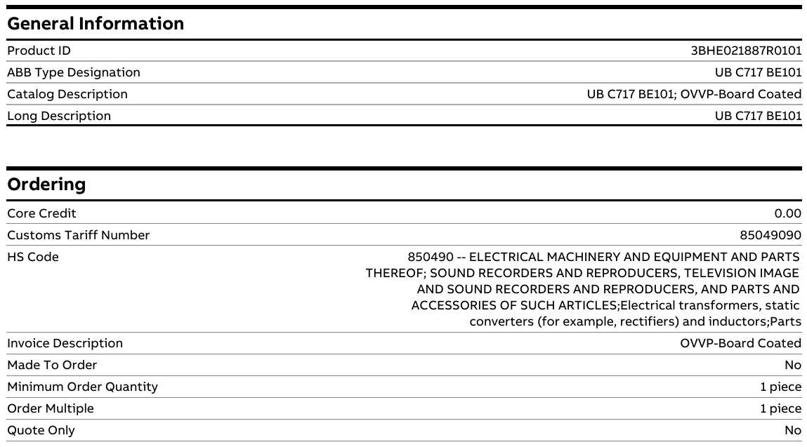 ABB 3BHE021887R0101 UBC717BE101 عبارة عن PCB متخصص ومطلي تم تصميمه وتصنيعه بواسطة ABB لخطوط إنتاج الأتمتة الصناعية والطاقة والقيادة. تم وضع علامة واضحة على المنتج على أنه "OVVP-Board Coated"، حيث تشير كلمة "Coated" إلى أنه تم تطبيق طبقة من الطلاء المطابق على سطح لوحة الدائرة. عادةً ما يكون هذا الطلاء عبارة عن طبقة بوليمر شفافة تستخدم لإغلاق وحماية المكونات الإلكترونية الموجودة على لوحة الدائرة، وحمايتها من الرطوبة والغبار والملوثات الكيميائية والضباب الملحي والعفن. ولذلك، فإن 3BHE021887R0101 ليس وحدة وظيفية مستقلة أو منتج نهائي، بل هو بمثابة قطعة غيار أساسية أو مكون فرعي، مدمج ضمن المعدات الكهربائية الأكثر تعقيدًا لشركة ABB. وهذا يضمن التشغيل الموثوق به على المدى الطويل للمعدات المضيفة في البيئات الصناعية القاسية.