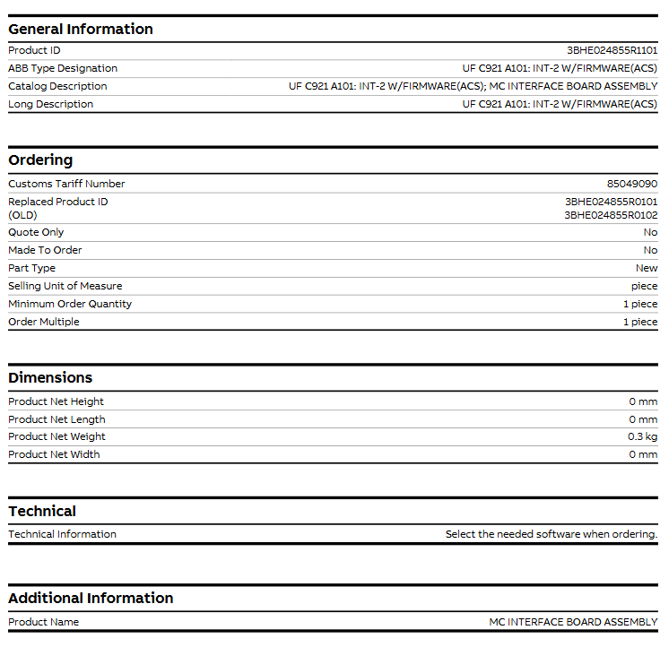 أثناء ترقية النظام، احتاج المهندسون إلى استبدال وحدة التحكم الأصلية بنموذج جديد. على الرغم من أن وحدات التحكم القديمة والجديدة لها مظهر مماثل، فقد تم تحديث بروتوكول الاتصال بين وحدة التحكم الرئيسية ووحدة الطاقة في الوحدات الجديدة. في هذه المرحلة، يجب تجهيز لوحة واجهة 3BHE024855R0101 MC المطابقة لوحدة الطاقة الجديدة، ويجب طلب اللوحة بالإصدار الصحيح من برنامج ACS الثابت.