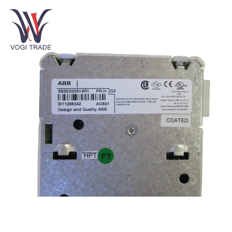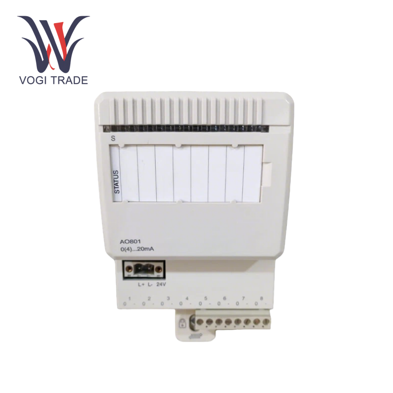 يحول DAC الداخلي (محول الرقمية إلى المناطق) من ABB AO801 3BSE020514R1 الإشارة الرقمية إلى إشارة تيار تمثيلي تتكون من 0-20 مللي أمبير أو 4-20 م ، والتي يتم إخراجها إلى الجهاز الميداني من خلال وحدة MTU (الوحدة الطرفية).