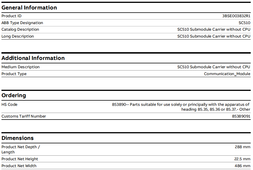 مضيف الوحدة الفرعية. تكمن القيمة الأساسية لـ SC510 في قدرته على العمل "كمضيف". يمكن لـ 3BSE000863R1 استيعاب سلسلة محددة من وحدات الاتصال الفرعية ودمج وظائف هذه الوحدات الفرعية بسلاسة في ناقل اللوحة الإلكترونية المعززة لنظام Advant Master.