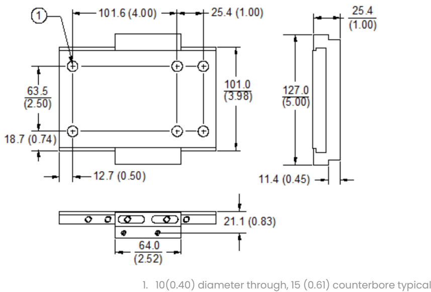 الحد الأدنى عرض 89.4 مم (3.52 بوصة) بالإضافة إلى 3.05 مم إضافي (0.12 بوصة) من الخلوص مطلوب للإزالة.