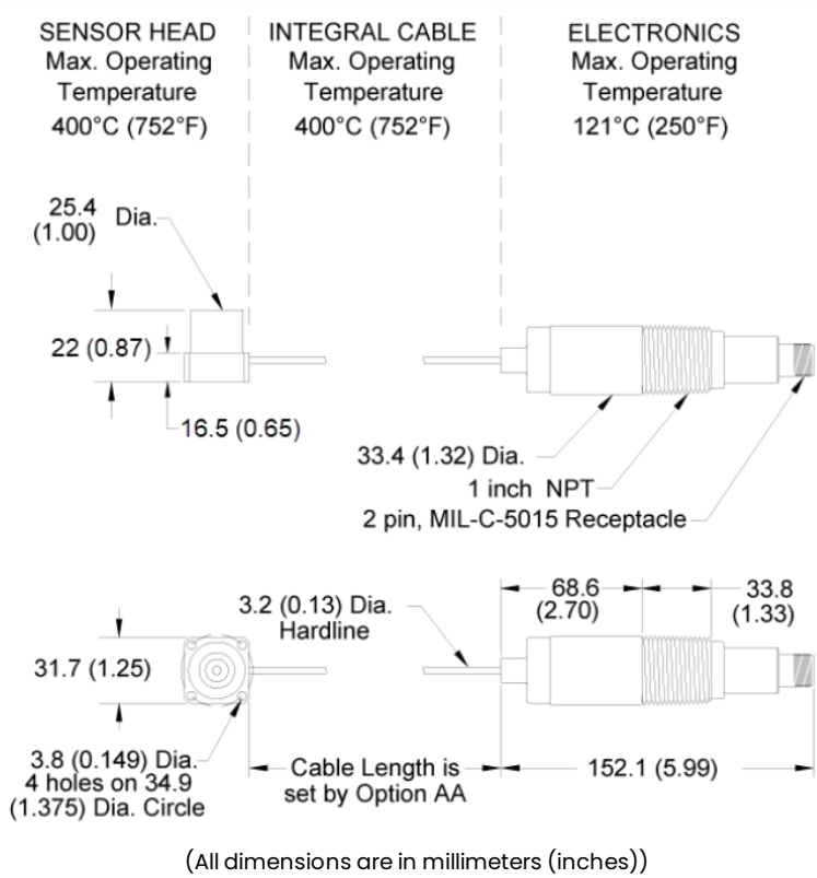 يتم فصل عنصر الاستشعار وإلكترونيات تكييف الإشارة وتوصيلهما بشكل دائم عبر كابل صلب متكامل لمنع فشل الموصل.