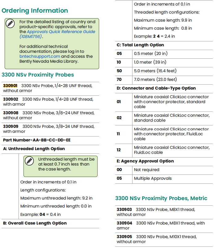 يمكن استخدام Bently Nevada 330901-00-90-05-02-00 مع كابل تمديد 3300 NSv المحدد ومستشعر القرب 3300 XL NSv لتشكيل نظام قياس كامل وفعال بالكامل.