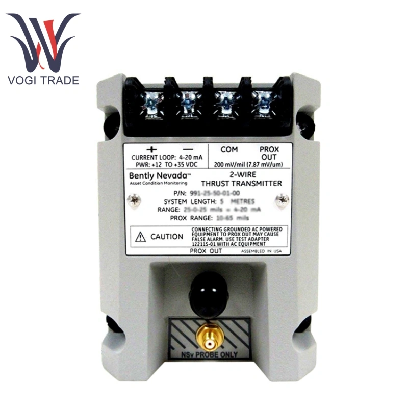 خرج إشارة ثابت: Bently Nevada 991-25-50-01-00 مع دوائر الكشف عن الأخطاء، مثل "غير موافق" و"فشل الإشارة"، يمنع الخرج العالي أو الإنذارات الكاذبة الناجمة عن فشل المسبار أو الاتصالات غير المستقرة.