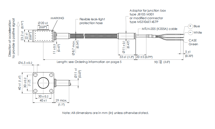 تم تزويد CA202 144-202-000-125 بكابل منخفض الضوضاء محميًا بخرطوم حماية من الفولاذ المقاوم للصدأ المرن (LeakTight) وهو ملحومة بشكل هائل إلى المستشعر لإنتاج مجموعة تسرب مختومة.