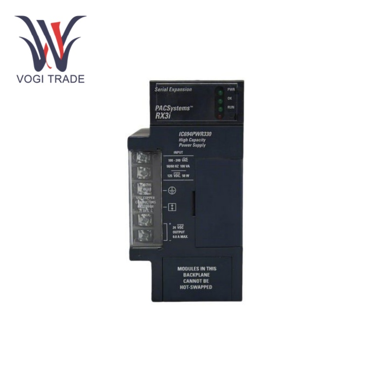 التوافق العالي:باعتبارها وحدة إمداد طاقة توسعية تسلسلية لوحدة التحكم المنطقية القابلة للبرمجة GE RX3i Pac Systems، فإن GE IC694PWR330 متوافق مع أي وحدة معالجة مركزية في سلسلة منتجات RX3i، مما يوفر دعمًا مناسبًا لإمدادات الطاقة لتوسيع النظام وترقيته.