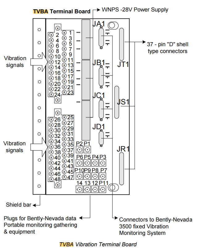 مصدر طاقة الإثارة بالنسبة لمقاييس التسارع ICP/IEPE، ستوفر اللوحة الطرفية أو وحدة VVIB المصاحبة +24 فولت تيار مستمر، وإثارة مصدر تيار ثابت 2-10 مللي أمبير. بالنسبة لأجهزة استشعار التيار الدوامي، يتم توفير الإثارة عادةً بواسطة المضخم الأولي (Proximitor)، وتستقبل لوحة TVBA إشارة الخرج الخاصة بها فقط.